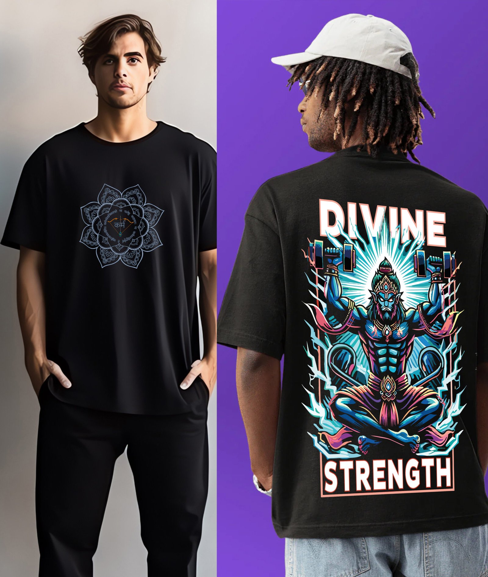 Each t-shirt is adorned with high-definition prints of sacred deities, bringing spiritual energy and positivity into your wardrobe. The oversized fit ensures a relaxed, modern silhouette, offering both comfort and a stylish edge.