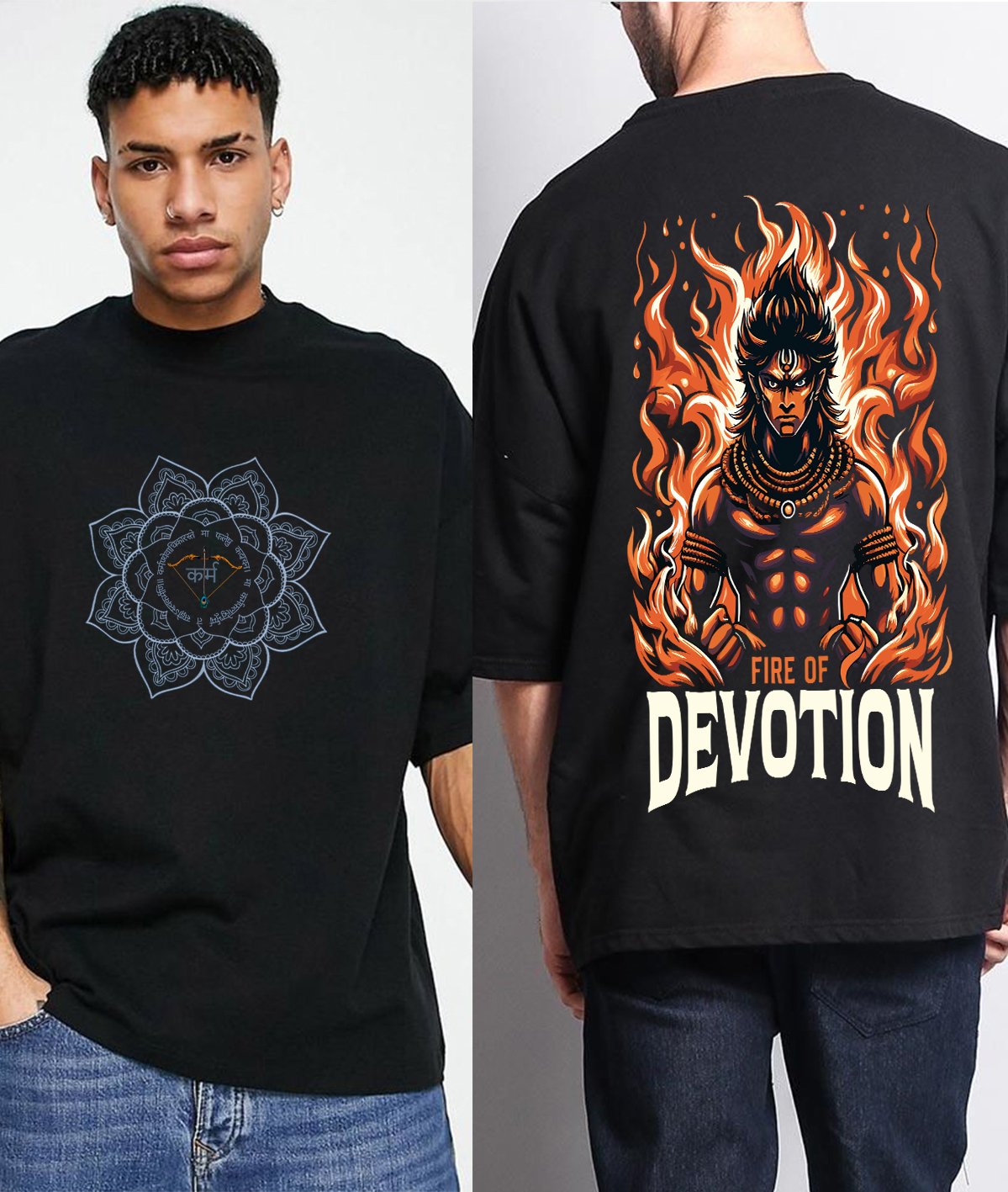 Each t-shirt is adorned with high-definition prints of sacred deities, bringing spiritual energy and positivity into your wardrobe. The oversized fit ensures a relaxed, modern silhouette, offering both comfort and a stylish edge.