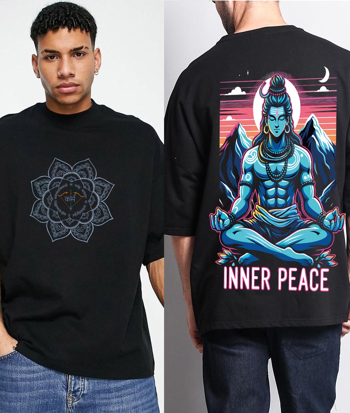 Each t-shirt is adorned with high-definition prints of sacred deities, bringing spiritual energy and positivity into your wardrobe. The oversized fit ensures a relaxed, modern silhouette, offering both comfort and a stylish edge.